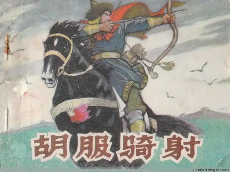 - 250.1982年出版的连环画《胡服骑射》绘画:胡明军