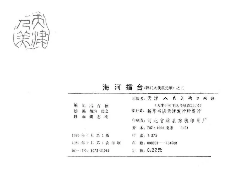- 6.津门大侠霍元甲故事连环画之一《大闹娘娘宫》天津人民美术出版社