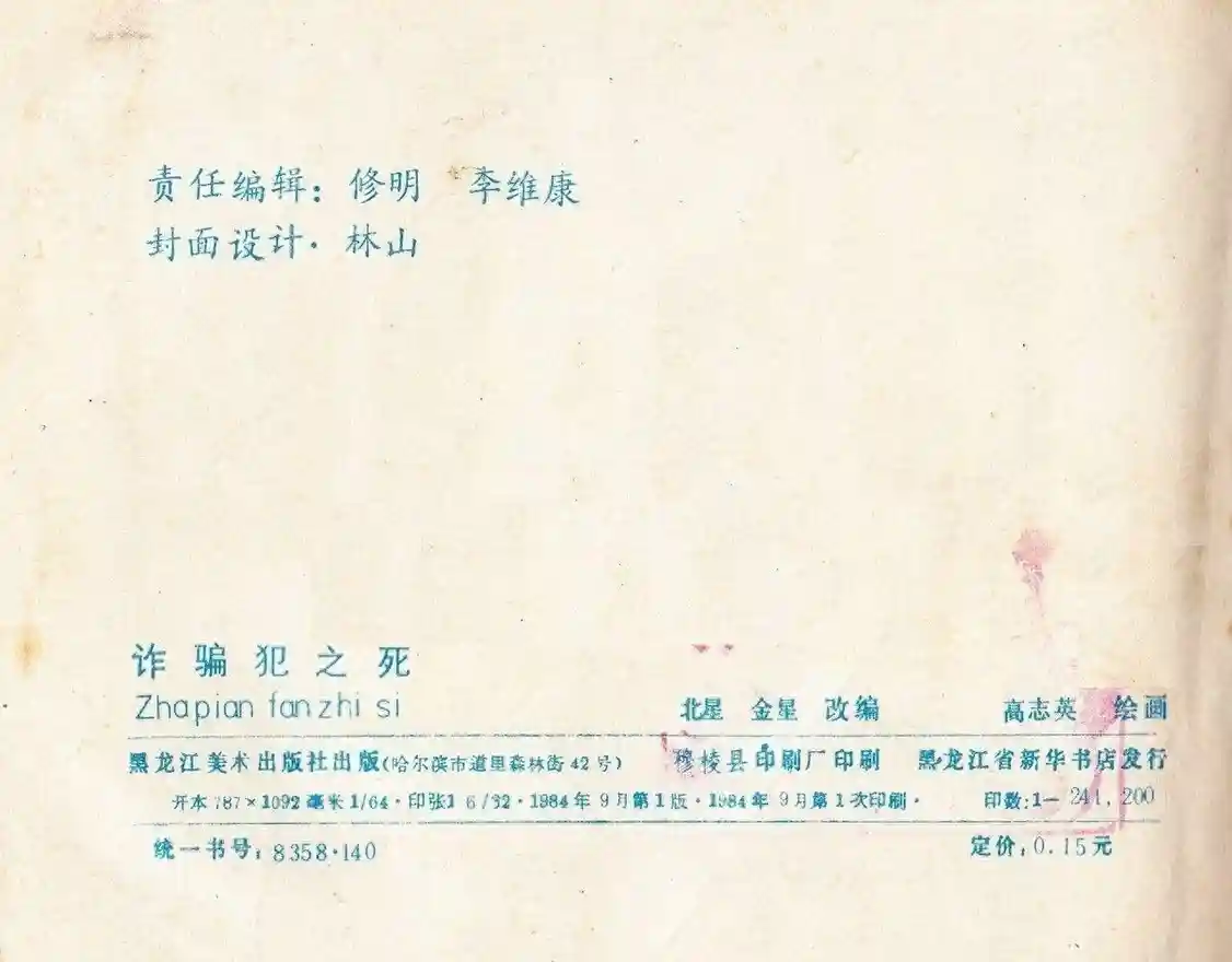 - 349.《诈骗犯之死》(76页)黑龙江版原著:[日]西村京太郎,改编:北星、金星,绘图:高志英