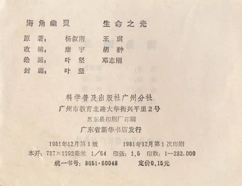 - 93.《海角幽灵》科学普及出版社广州分社1981叶坚绘